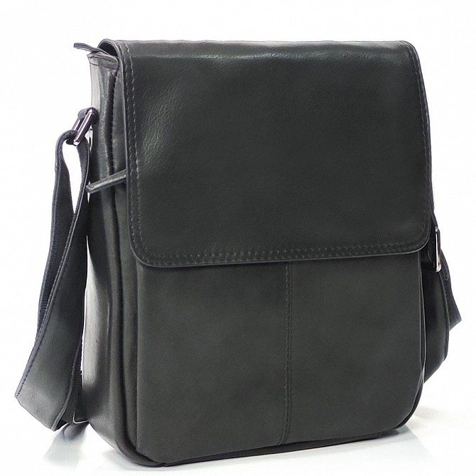 - місткий і комфортний месенджер з якісної натуральної шкіри, спереду оснащений відкидним клапаном на кнопці, під яким знаходиться відмінна кишеня на блискавці;