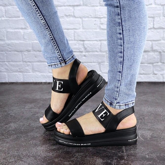 Женские босоножки черные Luna 1824 Материал: эко - кожа Застежка: резинка Платформа: 5 см Цвет: черный Сезон: лето Размеры: 36, 37, 38, 39, 40, 41 Полномерные: 36 - 23,5 см 37 - 24 см 38 - 24,5 см 39 - 25 см 40 - 25,5 см 41 - 26 см