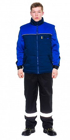 Темно синий жилет выполнен из износостойкой прочной ткани. Предусмотрен и утеплитель – синтепон, плотностью 300 г/м². Подкладка – из стопроцентного полиэстера. Такая качественная высокопрочная спецодежда несомненно будет востребована на многих современных предприятиях.